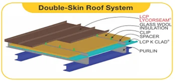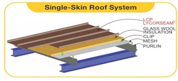 LCP LYCORSEAM® Standing Seam Roof System emanates modernity and versatility in architectural appeal, yet highly functional. Its concealed clips are specially designed to minimize heat conductivity whilst maximizing sliding efficiency. LCP LYCORSEAM® is an ideal choice for aesthetically pleasing Standing Seam Roofing system.