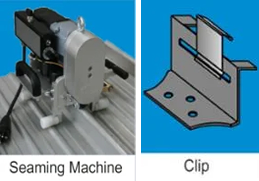 LCP LYCORZIP® Standing Seam Roof system is a formed material without joints with panels joined together with a double-lock Standing seam, and fastened to the Purlins with clips formed into the seam. LCP LYCORZIP® Standing Seam Roof profile panels of 480mm effective cover width having crest height of 75 mm is mechanically seamed with heavy duty electric portable roll-forming machine to withstand wind uplift and foot traffic.